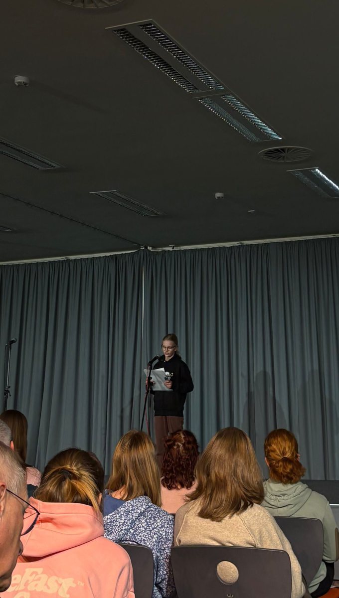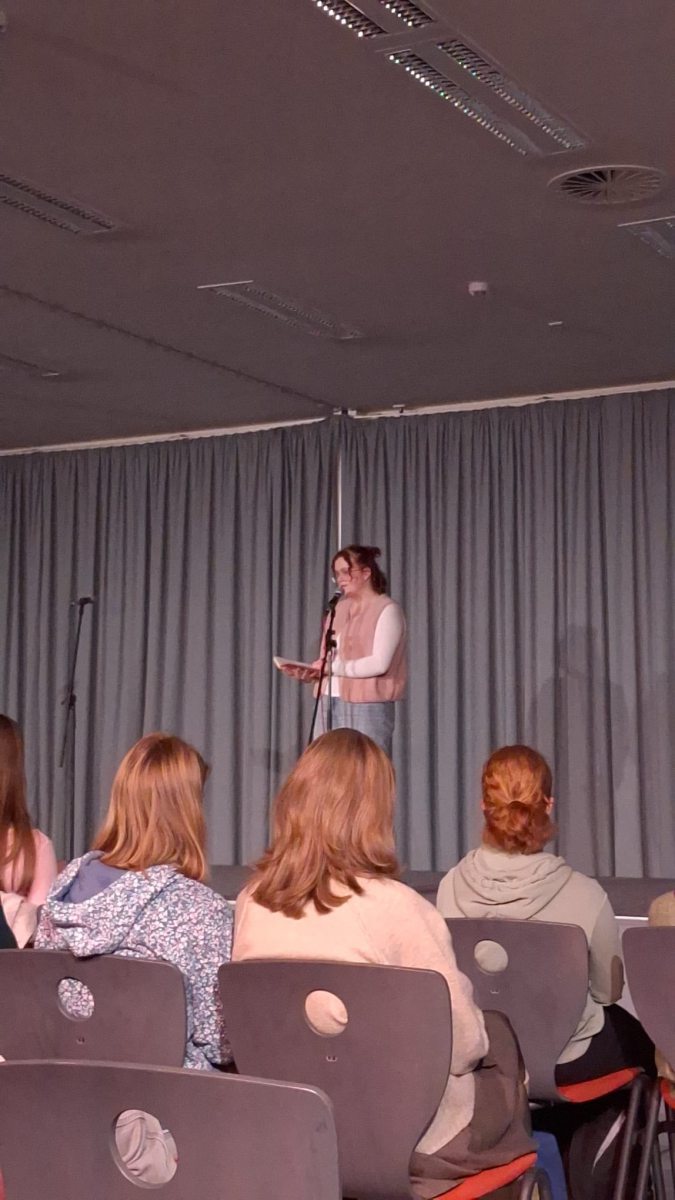 Drei Teilnehmerinnen, Anna Bruder, Jule Patzelt und Elly Fehsecke, qualifizierten sich für die 2. Runde und überzeugten mit jeweils einem weiteren Text. Die Entscheidung für einen Sieger fiel der kompetenten Jury, bestehend aus zwei Deutschlehrerinnen sowie zwei Schülern des 12. Jahrgangs, sowohl in der ersten als auch in der zweiten Runde nicht leicht. Die Wahl fiel schließlich auf Anna Bruder. Jule Patzelt wurde mithilfe des Publikumsvotings zur „Siegerin der Herzen“ gekürt.