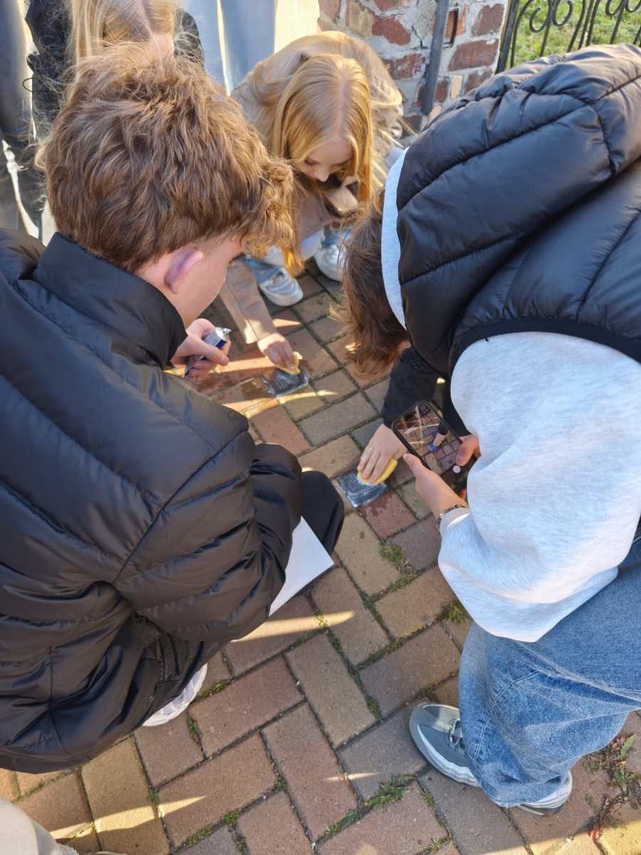 Da am 09.11. auch der Jahrestag der Reichspogromnacht ist, spielte auch die Geschichte der jüdischen Familien in Wernigerode eine Rolle. In vier Gruppen recherchierten die Schülerinnen und Schüler mittels unterschiedlicher Medien zuerst zum Leben dieser Familien, um dann im Anschluss die entsprechenden Stolpersteine zu reinigen und dadurch an deren Schicksal zu erinnern.