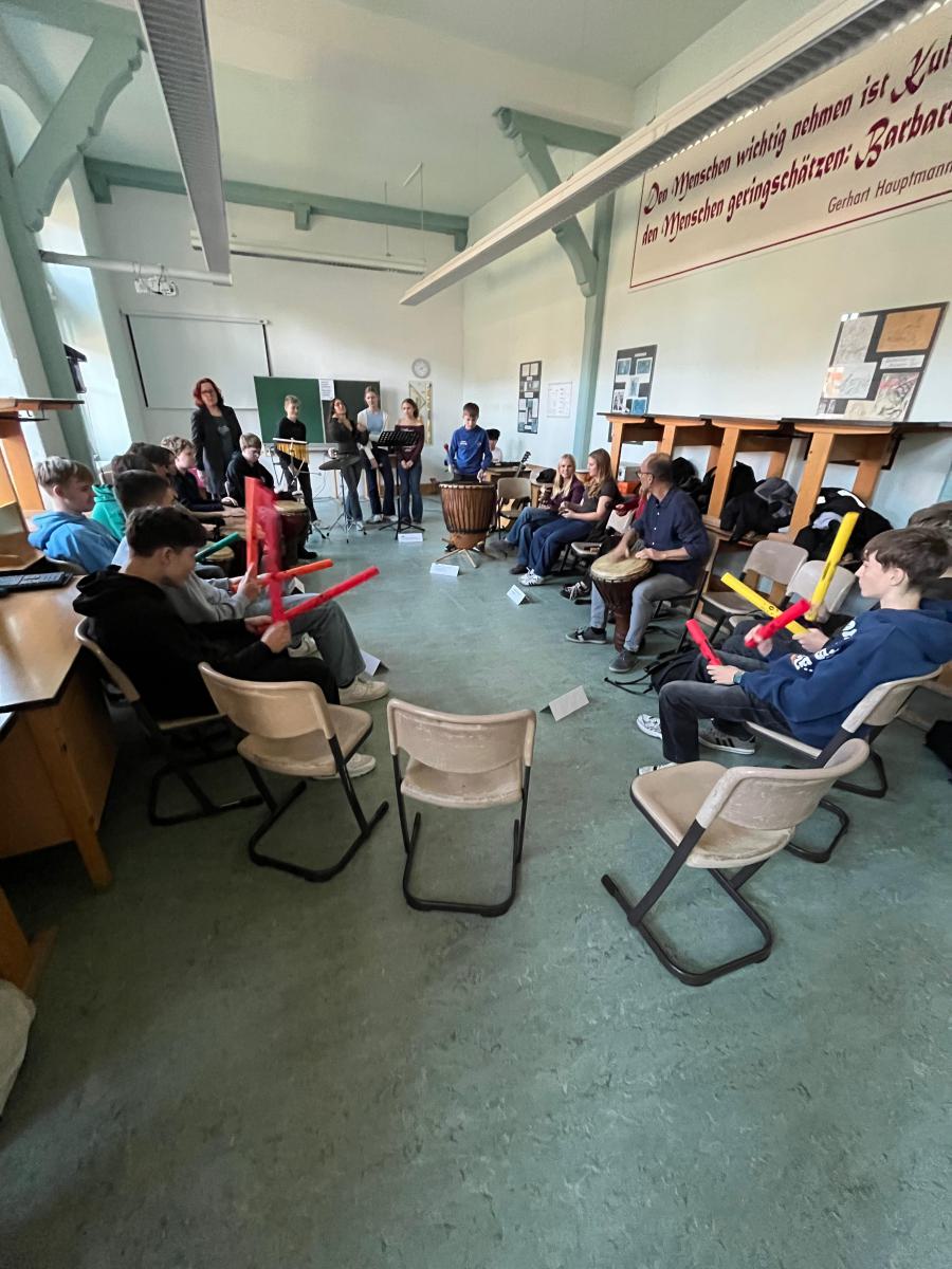 Den Themenfeldern Ausgrenzung und Vorurteile widmeten sich die beiden Workshops „Living Library“ des Jedermensch e.V. und „Zwischen Toleranz und Ausgrenzung“, geleitet von zwei Vertretern des Internationalen Bundes. Diese machten die Themen durch Musik, Rollenspiele und Gedankenexperimente für die Schülerinnen und Schüler greifbar und regten diese zur Reflexion an.